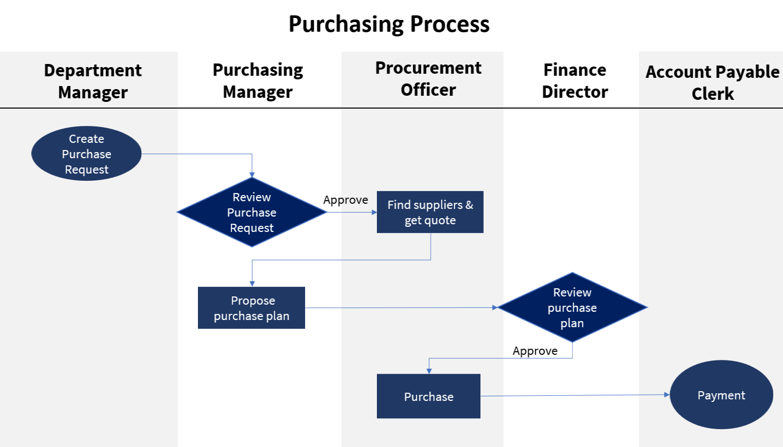 Example: A purchasing process begins with a "purchase request" and proceeds through various steps to conclude with "purchased goods."